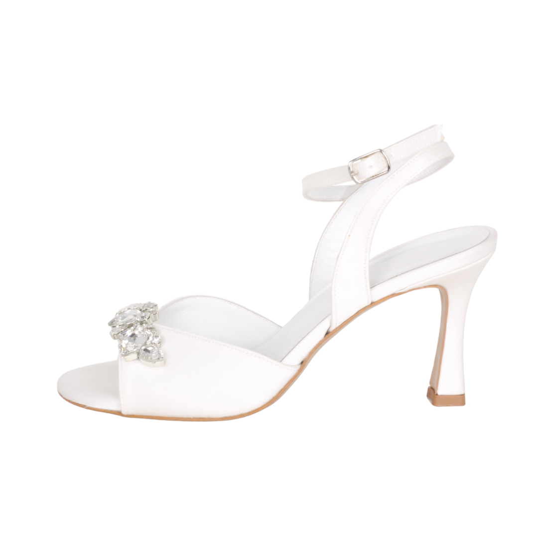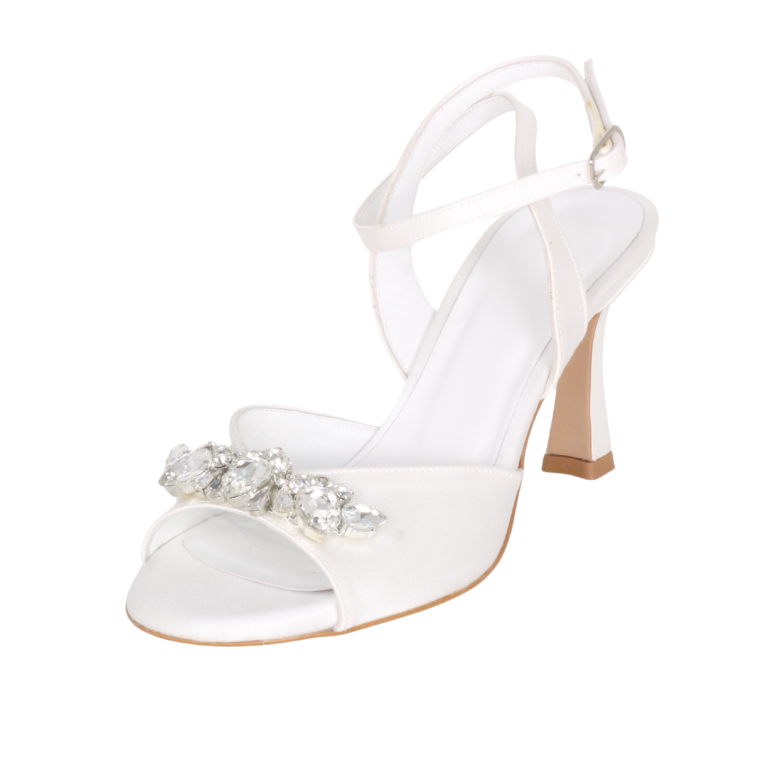 Sandali in raso bianco sposa con strass tacco 7,5 cm clessidra