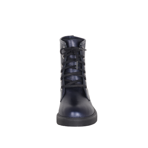 DAMIENNE - Anfibio donna personalizzabile in vera pelle blu martellata con fondo 3,5 cm – Made in Italy