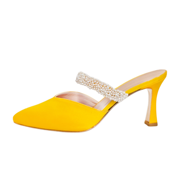 Scarpe a punta in raso giallo e perle
