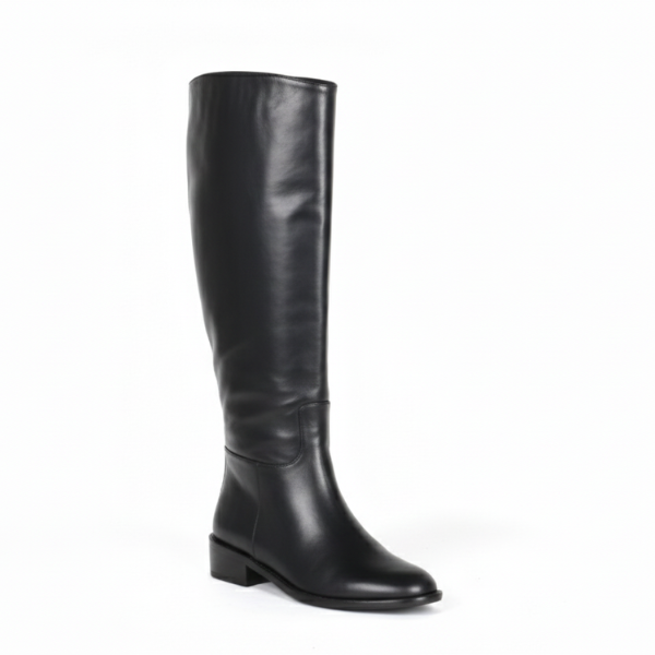 Elegante, essenziale e costruito per durare: questo stivale alto in vera pelle nera rappresenta la migliore tradizione artigianale italiana. La tomaia liscia e uniforme avvolge la gamba con una linea slanciata e raffinata, mentre il tacco basso garantisce il massimo della stabilità, rendendolo ideale per un utilizzo quotidiano.